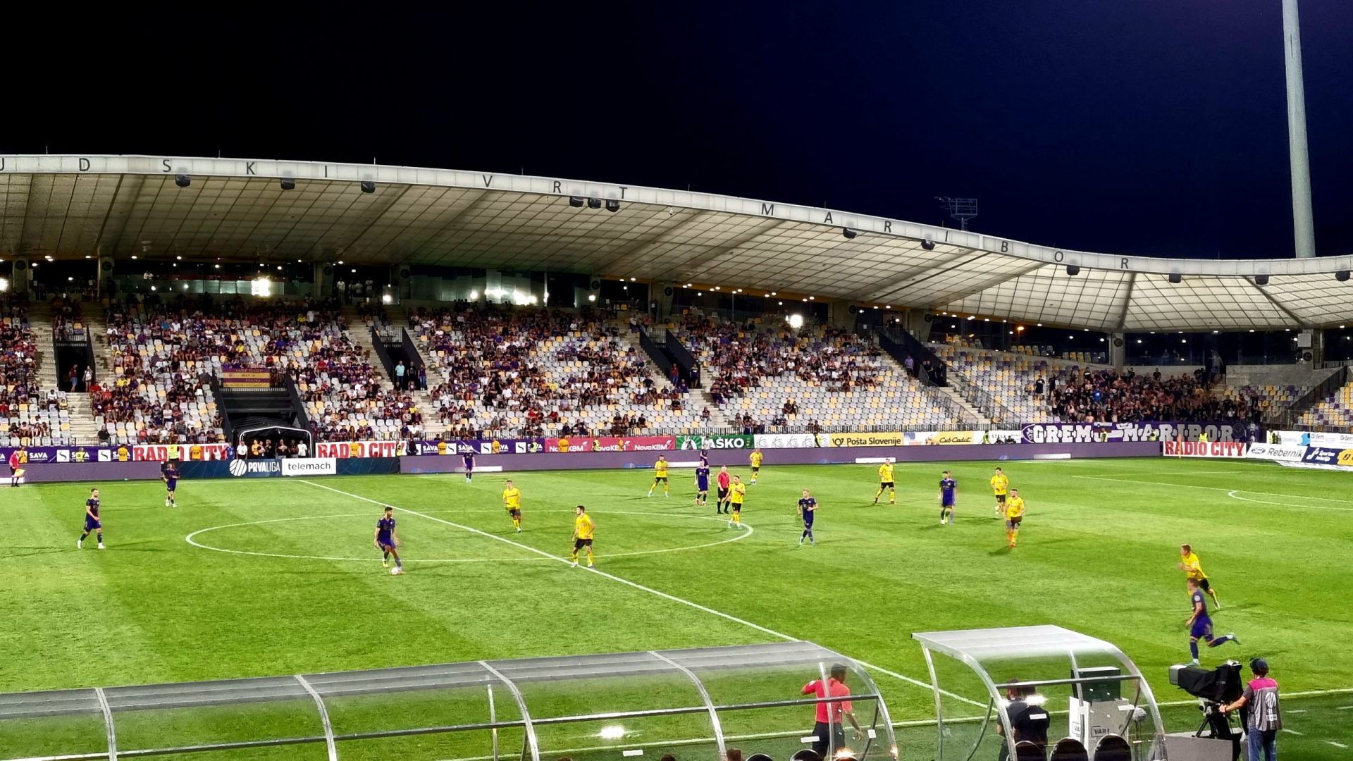 V drugi polovici prvega polčasa je sledil nov šok za vijoličaste. Po natančni dolgi podaji je z imenitnim volej udarcem zadel Luka Cerar. Konec prvega polčasa so navijači Maribora pospremili z glasnimi žvižgi, 0-2.
