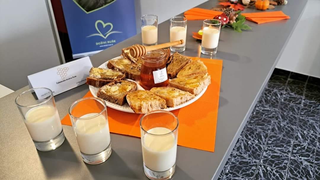 Za zajtrk so postregli s tradicionalnimi živili, poleg mleka še z medom, maslom, kruhom in jabolki. Vse sestavine bodo lokalnega porekla (Saint Lorenz, Čebelarska družina Ruše, Esenwoodcraft Matija Rižner, …).