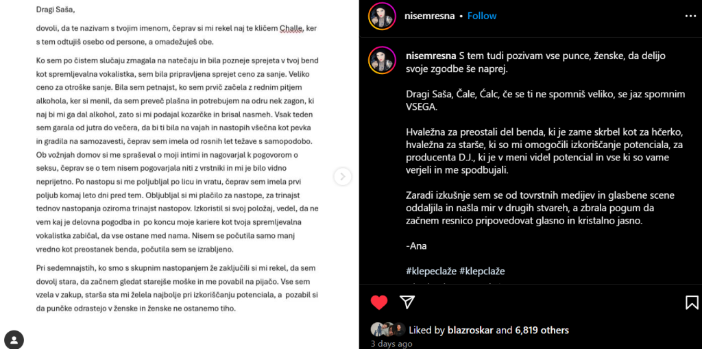 “Moje številke so trenutno organske, to je zelo pomembno. Jaz nisem hodil k nobenemu Pero Markiču, da mi naredi komad. Nisem prosil nikogar, da objavi moj komad na TikToku in me zafolova. Take zgodbe, ki zdaj prihajajo do mene, so tako žalostne, da bolj žalostno ne more biti. Bi pa še nekaj izpostavil.